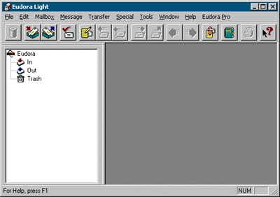 Open Eudora. You should come to a screen that looks like this (Eudora Pro may look a bit different, but is essentially the same):