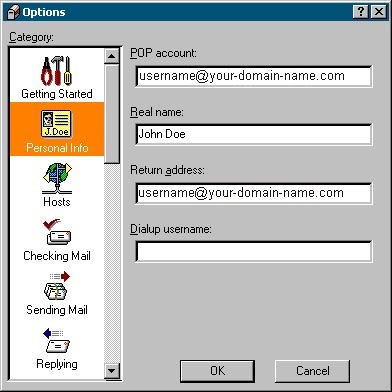 - Return Address - enter your e-mail address here in the format username@yourname.com.